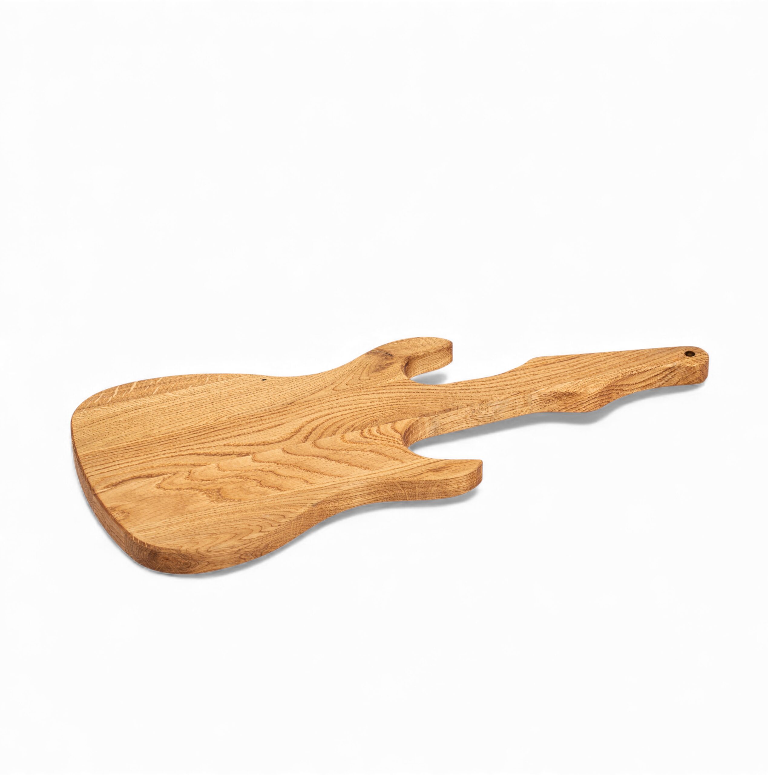 Drewniana deska do serwowaniaw kształcie gitary łączy w sobie rzemiosło, styloraz muzyczną inspirację. Każdy egzemplarz wykonujemy ręcznie z naturalnego drewna dębowego, dzięki czemu każda deska zyskuje unikalny rysunek i charakter. Co więcej, świetnie sprawdza się nie tylko do serwowania serów, wędlin, owoców i przekąsek, ale również – w codziennym użytkowaniu może pełnić funkcję klasycznej deski do krojenia. Jej wyjątkowy kształt przyciąga uwagę, dlatego staje się nie tylko praktycznym elementem kuchni, lecz także dekoracją stołu, ściany czy nawet domowego studia muzycznego. Długość całkowita deski to 42 cm x 20 cm szerokości.To funkcjonalny produktz artystycznym akcentem, który wnosi do wnętrza naturalne pięknoi niepowtarzalny klimat.