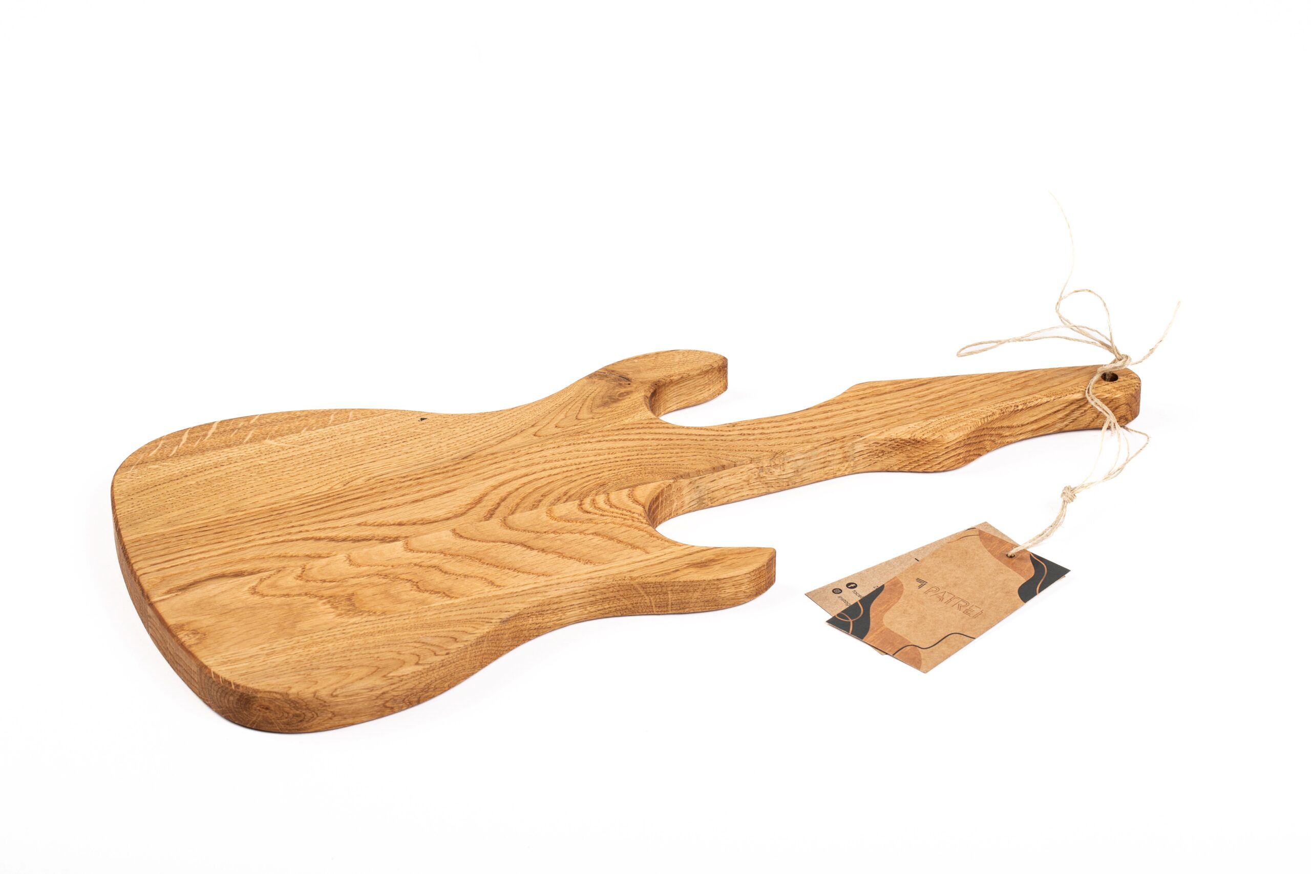 Drewniana deska do serwowania w kształcie gitary łączy w sobie rzemiosło, styl oraz muzyczną inspirację. Każdy egzemplarz wykonujemy ręcznie z naturalnego drewna dębowego, dzięki czemu każda deska zyskuje unikalny rysunek i charakter. Co więcej, świetnie sprawdza się nie tylko do serwowania serów, wędlin, owoców i przekąsek, ale również – w codziennym użytkowaniu może pełnić funkcję klasycznej deski do krojenia. Jej wyjątkowy kształt przyciąga uwagę, dlatego staje się nie tylko praktycznym elementem kuchni, lecz także dekoracją stołu, ściany czy nawet domowego studia muzycznego. Długość całkowita deski to 42 cm x 20 cm szerokości. To funkcjonalny produkt z artystycznym akcentem, który wnosi do wnętrza naturalne piękno i niepowtarzalny klimat.