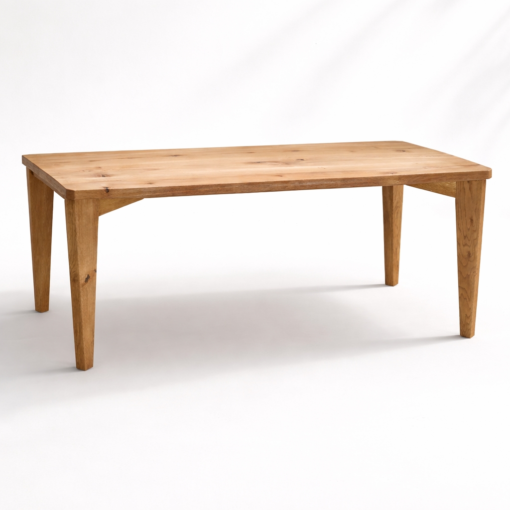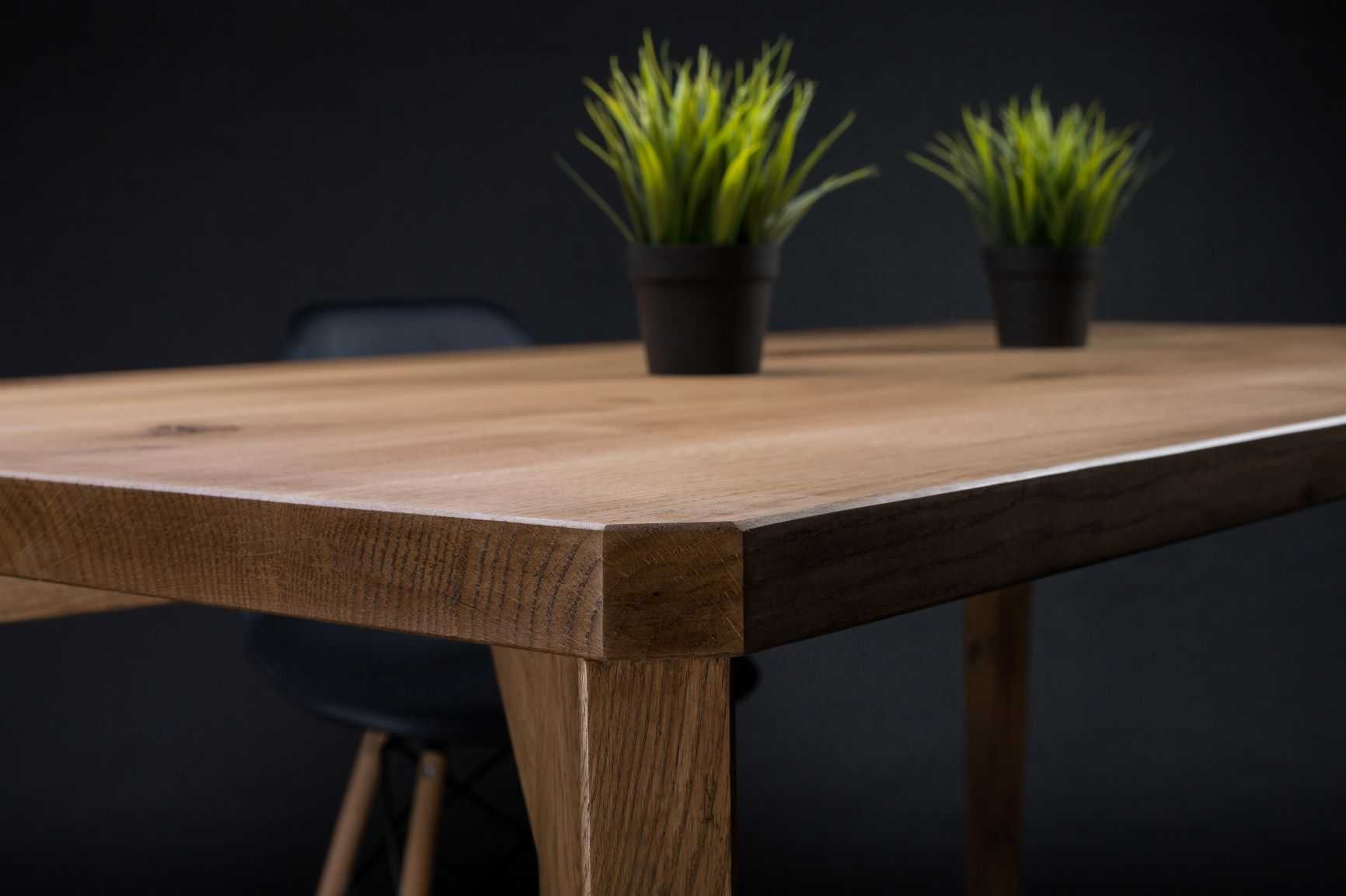 Stół dębowy S1 wykonany jest z litego drewna dębowego o grubości 4 cm, co zapewnia wysoką trwałość i stabilność konstrukcji. Naturalne wykończenie olejowoskiem podkreśla usłojenie oraz charakterystyczne sęki, a jednocześnie zabezpiecza blat przed codziennym użytkowaniem. Lekko skośne nogi oraz subtelnie ścięte narożniki poprawiają ergonomię i nadają bryle nowoczesny, minimalistyczny charakter. To solidny stół do jadalni z litego dębu, który sprawdzi się w aranżacjach nowoczesnych i klasycznych.