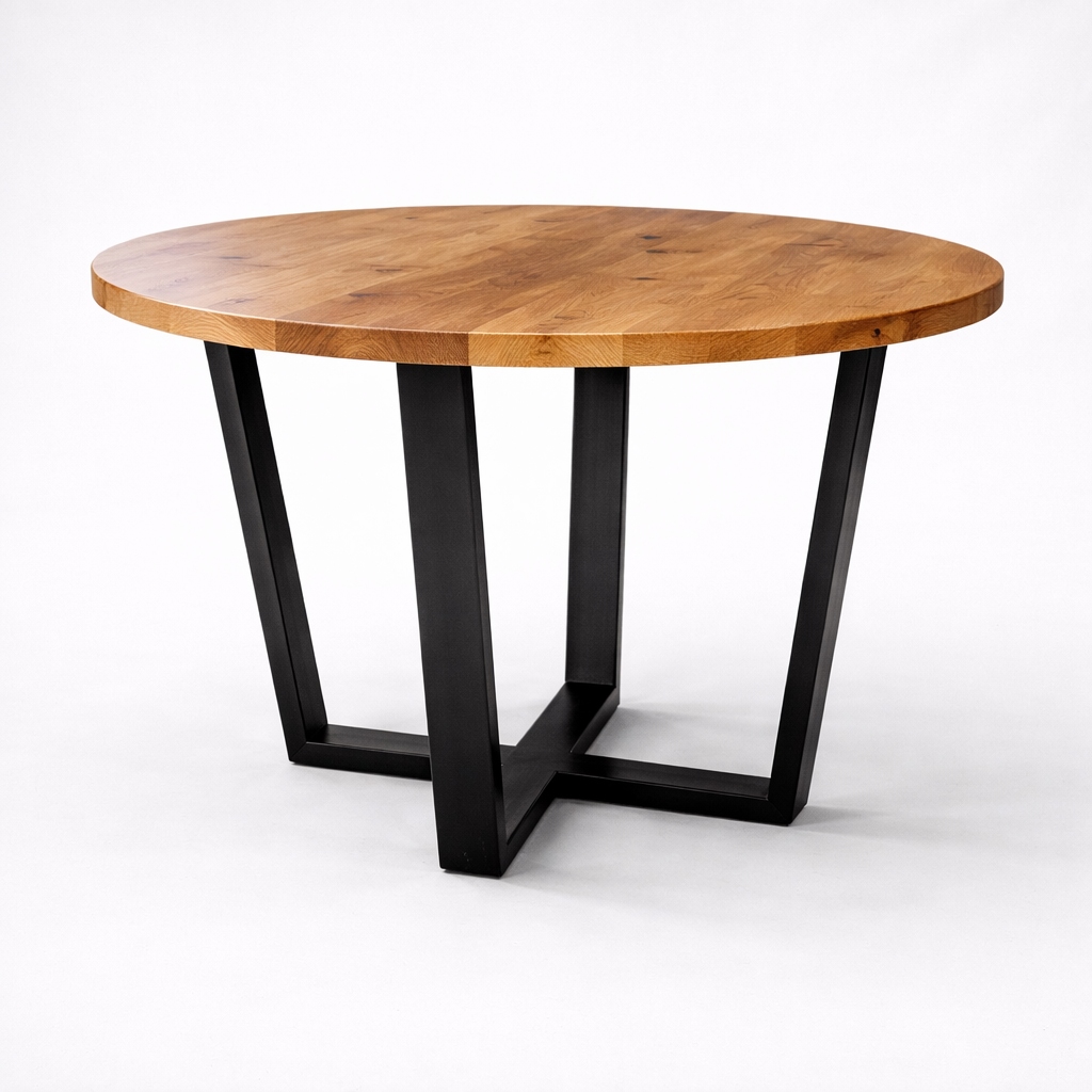 Lity dąb i stalowa podstawa do codziennego użytku – Stół okrągły drewniany S5